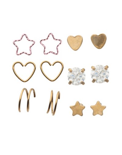 Multi-Pack Goldtone Heart Star Pin and Hoop Nose Rings 12 Pack - Ga