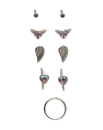 Buy Multi-Pack CZ Winged Heart Nose Pins and Hoops 9 Pack - Gauge for $24.99 at @ Spencersonline.com