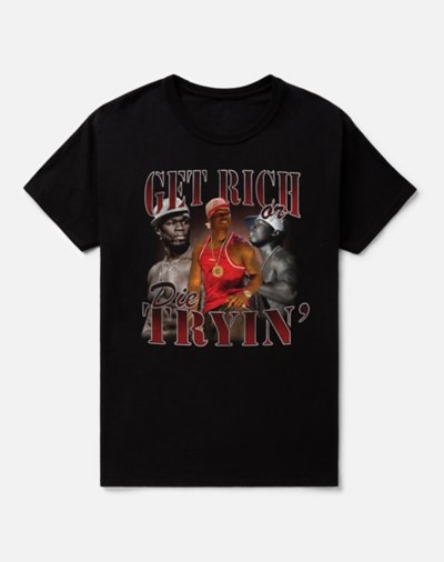 Rep the legend. This officially licensed 50 Cent Get Rich or Die Tryin' T Shirt brings 50 Cents iconic hustle to your everyday look. Officially licensed Crewneck Short sleeves Material: Cotton Care: Machine wash; tumble dry low Imported This shirt is Unisex Sizing only For a fitted look, order one size smaller than your normal size.