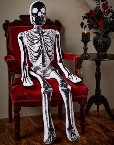 Meet your new bony buddy! This 5 Ftand Black Skeleton Plush is the ultimate companion for Halloween and beyond. Perfect for adding some skeletal charm to your space or for hugging on a chilly night. Rest in peace? More like rest in plush! Dimensions: 60" H x 17" W x 6" D Material: Polyester Care: Spot clean Imported.
