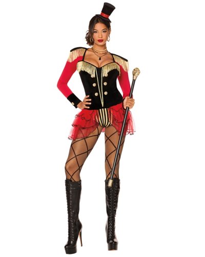 Have all eyes on you this Halloween at the costume party when you show up wearing this Mistress of Ceremonies Costume. While you're wearing this costume that features a ringmaster bodysuit with fringe epaulettes, goldtone striped shorts, attached tutu layered skirt, sequin trim, goldtone button details, and astriped top hat to complete the look, you'll always be in charge of making sure the show goes on. Includes: Bodysuit Hat Long sleeves Zipper closure Material: Polyester, spandex Care: Spot clean Imported Note: Shoes sold separately.