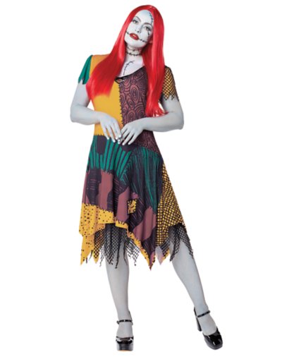 Bring Sally's surreal love story to life in this officially licensed The Nightmare Before Christmas costume! With a soft short-sleeved dress, a sequin-lined neckline, and a ruby red wig, this costume will make you look more like a sweet dream than a nightmare. Officially licensed Includes: Dress Wig Short sleeves Asymmetrical hem Material: Polyester, spandex Care: Hand wash Imported Note: Tights sold separately.