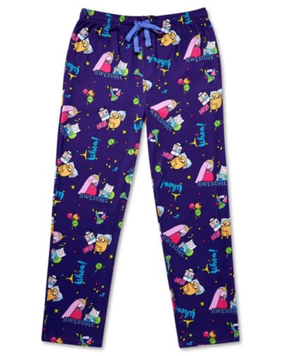 Keep your legs feeling warm and comfy all day long when you slip into these officially licensed Adventure Time lounge pants. With these cozy pajamas you'll be ready for any adventure in the Land of Ooo. Officially licensed Elastic waistband Waist tie closure Material: Polyester, spandex Care: Machine wash Imported.