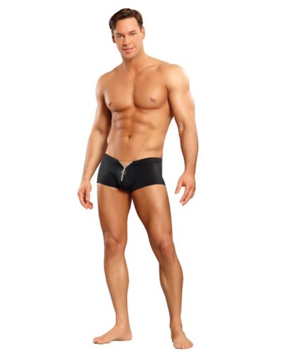 Can you say hot? These sexy men's zipper short shorts are sure to get you a reaction, whether you wear them in the bedroom or dare to wear them out. With a comfort fit pouch, these shorts are perfect for the pool or beach. Material: Polyester, spandex Zipper closure Care: Hand wash Imported Arrives in discreet packaging.