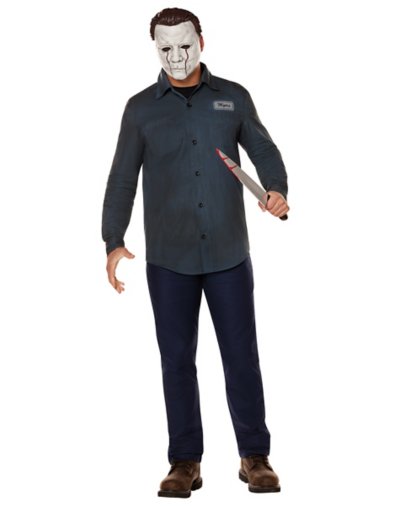 Got a passion for slashin'? Show off your Halloween fandom with this officially licensedAdult Michael Myers Costume Kit. This kit features Michael's iconic work shirt and a haunting mask! Officially licensed Includes: Work shirt Mask Long sleeves Button closure Material: Polyester Care: Spot clean Imported.