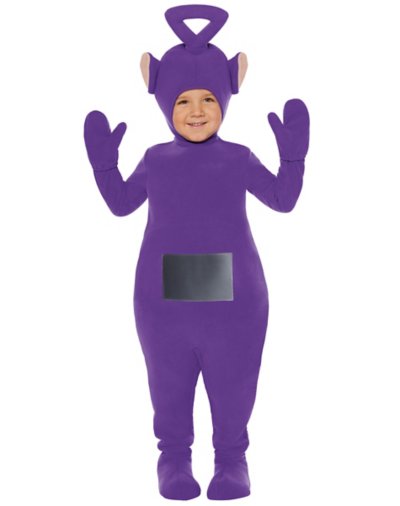 Dress up like Tinky Winky in this officially licensed toddler Teletubbies costume! This super-soft costume features ajumpsuit with a pretend screen attached to the belly. Ahood and gloves complete this playful Teletubbies Tinky Winky style. Officially licensed Includes: Jumpsuit Hood Mittens Long sleeves Material: Polyester Care: Spot clean Imported.