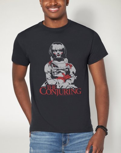 Everyone will know what youre binging when you show off your taste in horror movies with this officially licensed The Conjuring T Shirt. Suit up in this stylish tee and youll always be showing your fandom. Officially licensed Crewneck Short sleeves Tagless Length: About 28" from shoulder to hem Material: Cotton Care: Machine wash; tumble dry low Imported This shirt is Unisex Sizing only For a fitted look, order one size smaller than your normal size.