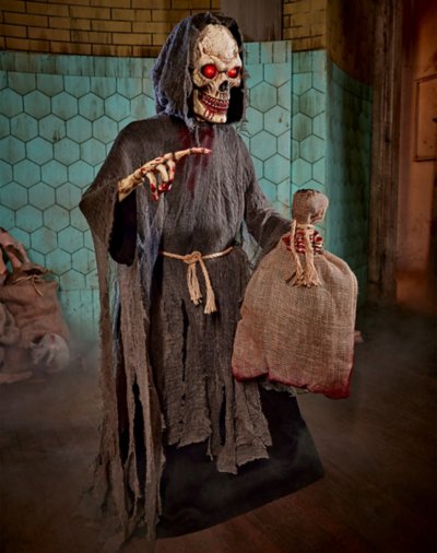 With so many souls ripe for the taking, The Collector created an army of minions to help him harvest their bones and build his army of demons. Now, his minions scuttle about the dark corners salivating for the flesh of the wicked and virtuous to feed their master's unholy appetite and build an army of underworld creatures ready to crawl out of the earth and feast on us all. Avoid the Collectors Minion or he may end up bringing you right back to his master! With red light up LED eyes and a side-to-side moving torso hes sure to have guests running in fear. Add him to your display and youll have one of the best-looking scary scenes in the neighborhood. Includes: Animatronic Instructions Volume control External speaker jack Adapter Product Sayings: Come.