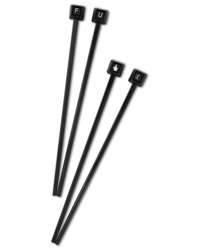 Let everyone know you're not sharing your meal with these exclusiveKeyboard Keys Chopsticks. This 2 pack features a pair of chopsticks with "F" and "U" key charm toppers and another with a middle finger and ":("key charm toppers. Exclusively at Spencer's Includes: 2 pairs of chopsticks Material: Acrylic Care: Hand wash Imported.