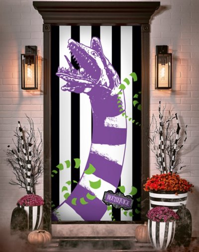 Transform the look of your house in one simple step with this officially licensed Beetlejuice door hanging! Youll love watching your guests react to the giant sandworm on your door as they approach your house. Its showtime! Officially licensed Dimensions: 37 W x 80 L Material: Polyester, spandex Care: Machine wash Imported Note: Fits most standard exterior doors.