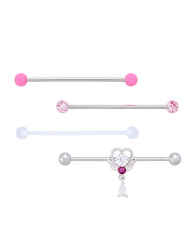 Multi-Pack Pink Angel Heart Industrial Barbell 4 Pack - Gauge