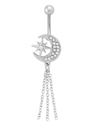 Buy Titanium Moon and Star Chain Dangle Belly Ring - Gauge for $29.99 at @ Spencersonline.com