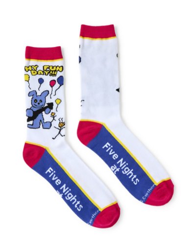 Step into fun with your favorite animatronic, Bonnie! Keep it cozy with FNAF vibes all day long in these officially licensedMy Fun Day Bonnie Crew Socks from Five Nights at Freddy's. Officially licensed Includes: 1 pair of crew socks Material: Polyester, spandex Care: Machine wash with like colors Imported.