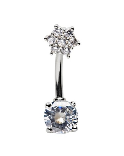 CZ Silvertone Belly Ring - Gauge