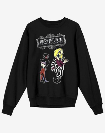 Say it three times. We dare you! Show off your Beetlejucie fandom in this oh-so cozyBeetlejuice and Lydia Animated Crewneck Sweatshirt! Officially licensed Crewneck Long sleeves Material: Cotton Care: Machine wash; tumble dry low Imported This tee is Unisex Sizing only For a fitted look, order one size smaller than your regular size.