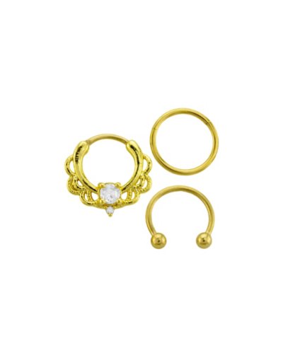 Multi-Pack CZ Goldtone Petals Septum Rings 3 Pack - Gauge