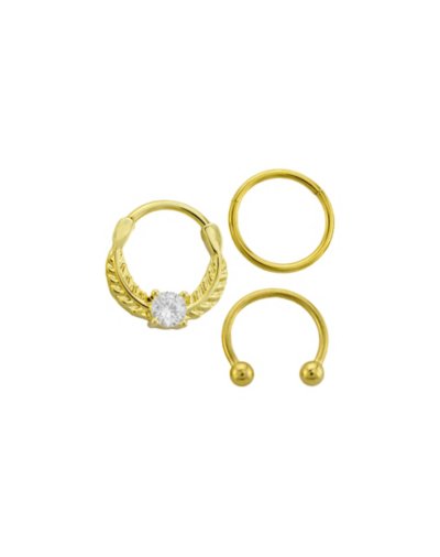 Buy Multi-Pack CZ Goldtone Horseshoe and Hinged Hoop Nose Rings 3 Pack - 1 for $21.99 at @ Spencersonline.com