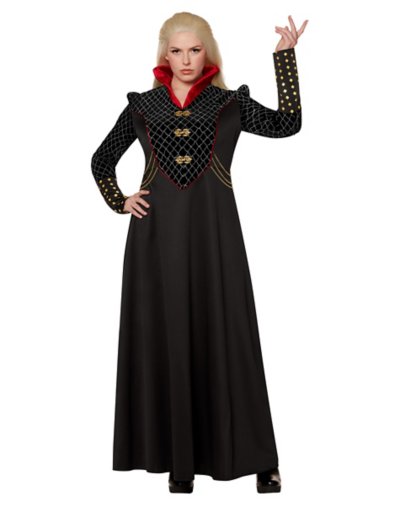 Constantly watching House of the Dragon? Celebrate the epic series when you wear this officially licensed Rhaenyra Dress. When you're rocking this beautiful outfit, everyone will think you're the Queen of the Targaryen Dynasty! Officially licensed Includes: Dress V-neck Long sleeves Zipper closure Material: Polyester Care: Spot clean Imported Note: Shoes and accessories sold separately.