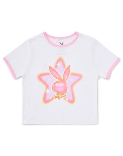 Add some flair to your wardrobe with this officially licensed Playboy Star Airbrushed Baby T Shirt. With its soft fabric and cropped fit, this tee is perfect for making a stylish statement while staying effortlessly cool and comfortable. Officially licensed Exclusively at Spencer's Crewneck Short sleeves Tagless Material: Cotton, polyester Care: Machine wash; tumble dry low Imported This shirt is Unisex Sizing only For a fitted look, order one size smaller than your normal size.