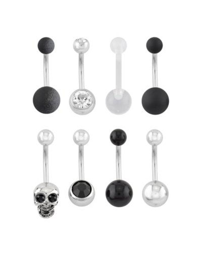 Buy Multi-Pack CZ Silvertone and Black Skull Titanium Belly Rings 8 Pack for $29.99 at @ Spencersonline.com