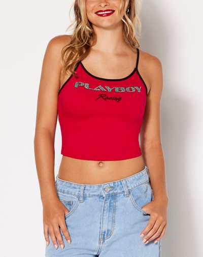 Buy Red Playboy Racing Rhinestone Tank Top for $24.99 at @ Spencersonline.com