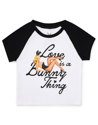 Fall head over heels in this adorable Playboy baby tee, featuring the cheeky phrase "Love is a Bunny Thing." Stylish, flirty, and comfortable, this cropped tee is sure to add some spice to your favorite outfits. Officially licensed Exclusively at Spencer's Crewneck Short sleeves Tagless Material: Cotton, polyester Care: Machine wash; tumble dry low Imported This shirt is Unisex Sizing only For a fitted look, order one size smaller than your normal size.