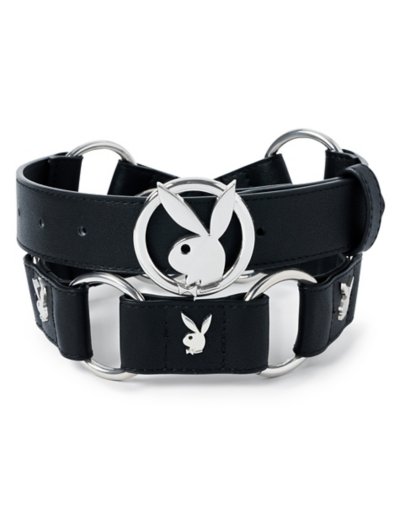 Keep your outfit together and looking fresh when you accessorize with this Black Playboy Ring Belt. You'll have the ultimate Playboy Bunny inspired look when you sport this stylish belt with metal rings and show off the Playboy Bunny logo. Officially licensed Dimensions: 40" H x 1.5" W Buckle closure Material: Polyurethane, metal Care: Spot clean Imported.
