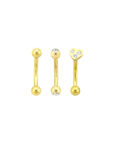 Multi-Pack CZ Goldtone Heart Curved Barbells 3 Pack - Gauge