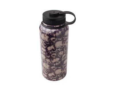 Stay hydrated in style with this exclusive Skull Water Bottle! This 32-ounce bottle will have you channeling your inner goth with each sip. Exclusively at Spencer's Dimensions: 9.8" H x 3.5" W x 3.5" D Capacity: oz. Material: Metal Screw closure Care: Hand wash Imported.