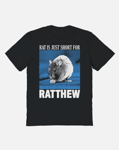 Go for the laughs with this Rat for Ratthew t shirt! With artwork by Triagus, this funny graphic tee is sure to be popular. Officially licensed Crewneck Short sleeves Material: Cotton Care: Machine wash; tumble dry low Imported This shirt is Unisex Sizing only For a fitted look, order one size smaller than your normal size.