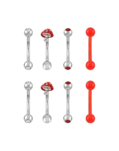 Buy Multi-Pack CZ Red Mushroom Curved Barbells 8 Pack - Gauge for $24.99 at @ Spencersonline.com