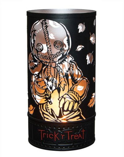 Light up any room with some horror inspired personality with this Sam Tabletop Tea Light Candle Holder! This official Trick 'r Treat candle holder features a unique Sam cutout design that allows light to pour out of it and into any Halloween scene. Officially licensed Dimensions: 7" H x 3.75" W x 3.75" D Material: Iron Care: Spot clean Imported.