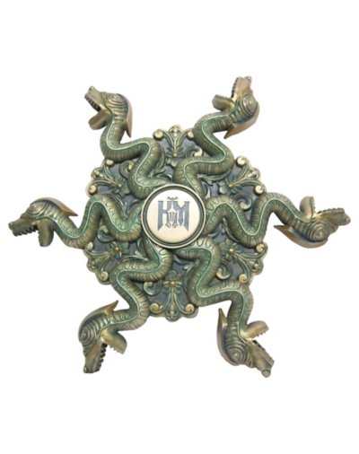 Welcome, foolish mortals! Bring a piece of eerie elegance home with this officially licensed Disney The Haunted Mansion Serpent Sign. Officially licensed Dimensions: 12"H x 13.5"W Material: Polyresin, stone powder Indoor use only Care: Spot clean Imported.