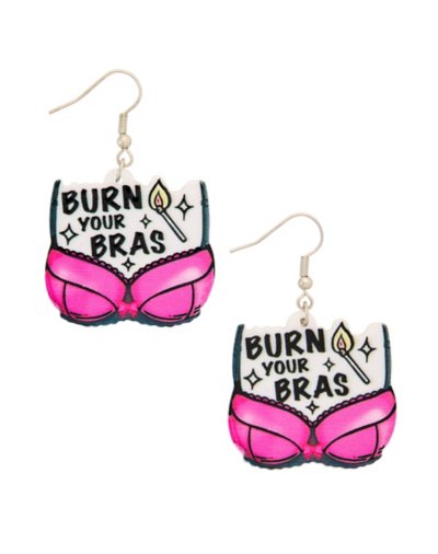 Buy Burn Your Bras Dangle Earrings for $12.99 at @ Spencersonline.com