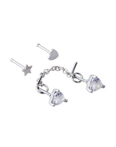 Buy Multi-Pack CZ Heart Chain Bone Nose Rings 6 Pack - Gauge for $19.99 at @ Spencersonline.com