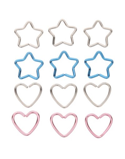 Multi-Pack Colored Heart and Star Seamless Hoop Nose Rings 12 Pack - 2