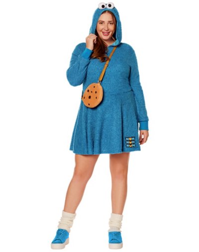 C is for cookie, but it's also for costume! You'll be screaming "cookie, cookie, cookie" all Halloween long once you get yourself this officially licensed Cookie Monster Dress Costume. Dress up in the stylish blue dress and accessorize with the included cookie crossbody bag and you'll look just like your favorite character! Officially licensed Includes: Dress Cross body bag Long sleeves Pullover style Material: Polyester Care: Spot clean Imported Note: Shoes sold separately.