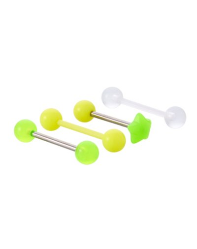 Includes: 4 Barbells Hold under direct incandescent or LED light for 1-5 minutes to activate glow Piercing Type: Multiple Barbell Material: 316L surgical steel Gauge: gauge/1.6mm Barbell Length: 16mm Ball Size: 6mm Externally threaded closure Jewelry Care: Clean with antibacterial soap and warm water Piercing Care: Clean withH2Ocean Aftercare Spray(sold separately) or saline solution Imported Note: Do not use any harsh, alcohol-based chemicals as this may cause tarnishing Do not over-thread or apply excess pressure when adding/removing beads as breakage could occur Surgical steel may.