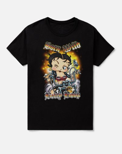 You'll ride in style with this officially licensed Rock Wild Betty Boop T Shirt! There's no one better to go wild with than Betty Boop! Officially licensed Crewneck Short sleeves Material: Cotton Care: Machine wash; tumble dry low Imported.