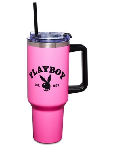 Add this Playboy travel tumbler to your drinkware rotation for an instant style (and hydration) boost. In bright pink with black graphics, this travel tumbler makes you look SO good. Officially licensed Capacity: oz. Material: Stainless steel Care: Hand wash Imported.