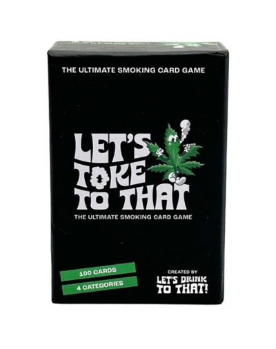 Less talk, more TOKE. Are you ready to toke to that? With four categories (this or that, purple haze, never have I ever, & a random deck) designed to spark conversation while you spark one up, Lets Toke To That is the ultimate smoking card game. Remember, this game is best paired with a gram! Officially licensed Includes: 100 cards Suggested Age 18+ Number of Players: 2+ Materials: Paper Imported.