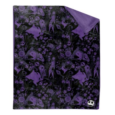 Wrap yourself in the eerie charm of The Nightmare Before Christmas with this officially licensed Halloween Town Faux Fur Fleece Blanket. This purple and black throw blanket features an all-over print of your favorite characters, including Jack Skellington, Sally, Oogie Boogie, Zero, & more! Officially licensed Dimensions: 60" H x 50" W Material: Polyester Care: Machine wash Imported.