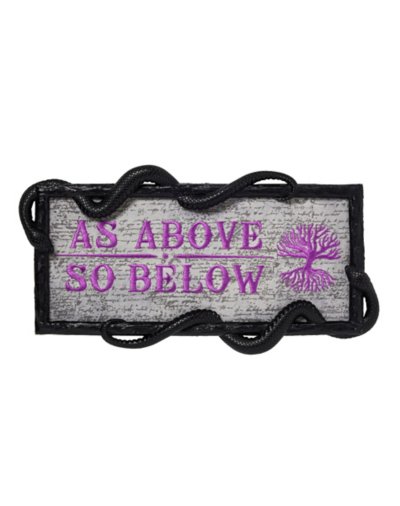 Add some mystical style to your home when you hang up this Mystical Arts as Above So Below Sign. Featuring a beautiful embroidered design, this decoration will show off your witchy side. Dimensions: 7.8" H x 15" W Material: Canvas, plastic Care: Spot clean Imported.