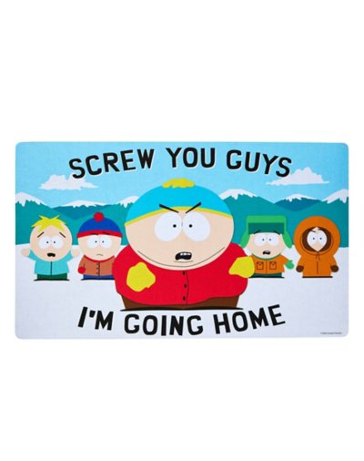 Screw you guys. I'm going home. Let Cartman's face be the first thing your guests see when they visit you! This funny doormat is perfect for any South Park fan. Officially licensed Indoor and outdoor use Dimensions: 17" H x 29" D Material: Rubber Care: Spot clean Imported.