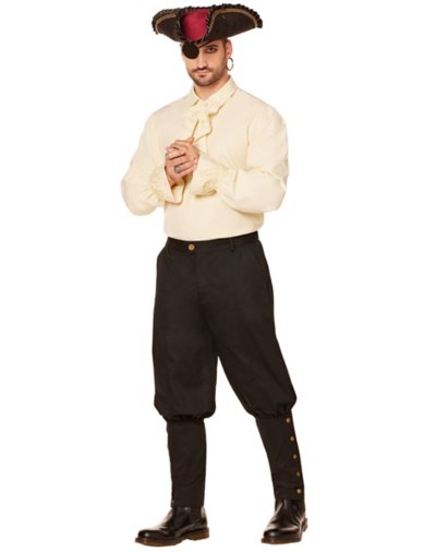 You'll have no problem swabbing the deck with these breeches! Complete any pirate costume with theseAdult Black Pirate Pants. Material: Cotton Care: Hand wash cold Imported Note: Short, hat, eye patch, sword, shoes, and other accessories sold seperately.