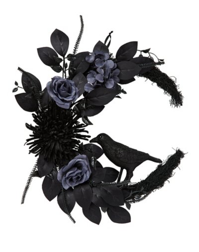 Buy Mystical Arts Black Flower Crow Wreath for $29.99 at @ Spencersonline.com
