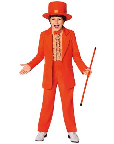 Hoping to spread some laughter this Halloween? Celebrate everyone's favorite idiot when you wear this officially licensed Lloyd Christmas Tuxedo Costume. Complete with the signature orange tuxedo jacket and pants, a ruffled shirt, a bowtie, cummerbund, and a cane, this outfit is perfect for any Dumb and Dumber fan. Prepare to crack up your friends and family! Officially licensed Includes: Jacket Pants Shirt Bowtie Cummerbund Cane Crewneck Long sleeves Pullover style Material: Polyester Care: Spot clean Imported Note: Shoes and hat sold separately.