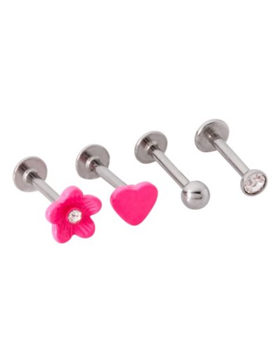 Buy Multi-Pack Pink Flower Labret Lip Rings 4 Pack - Gauge for $16.99 at @ Spencersonline.com