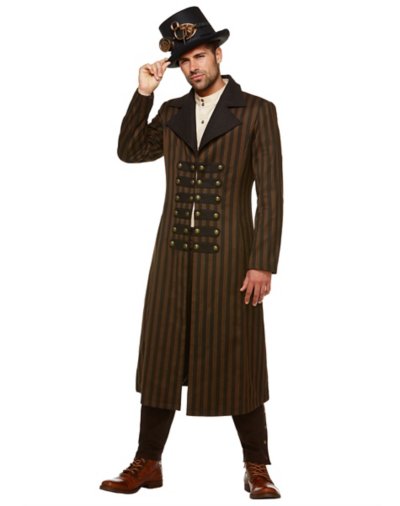 No one will look better than you this Halloween! In this Steampunk trench coat youll be staying warm and rocking an awesome costume all night long. Length: About 48 from shoulder to hem Material: Polyester, cotton, wool Care: Dry clean Imported Note: Hat, shirt, pants, and shoes sold separately.