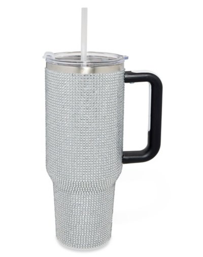 Buy Silver Rhinestone Travel Tumbler with Straw - oz for $34.99 at @ Spencersonline.com